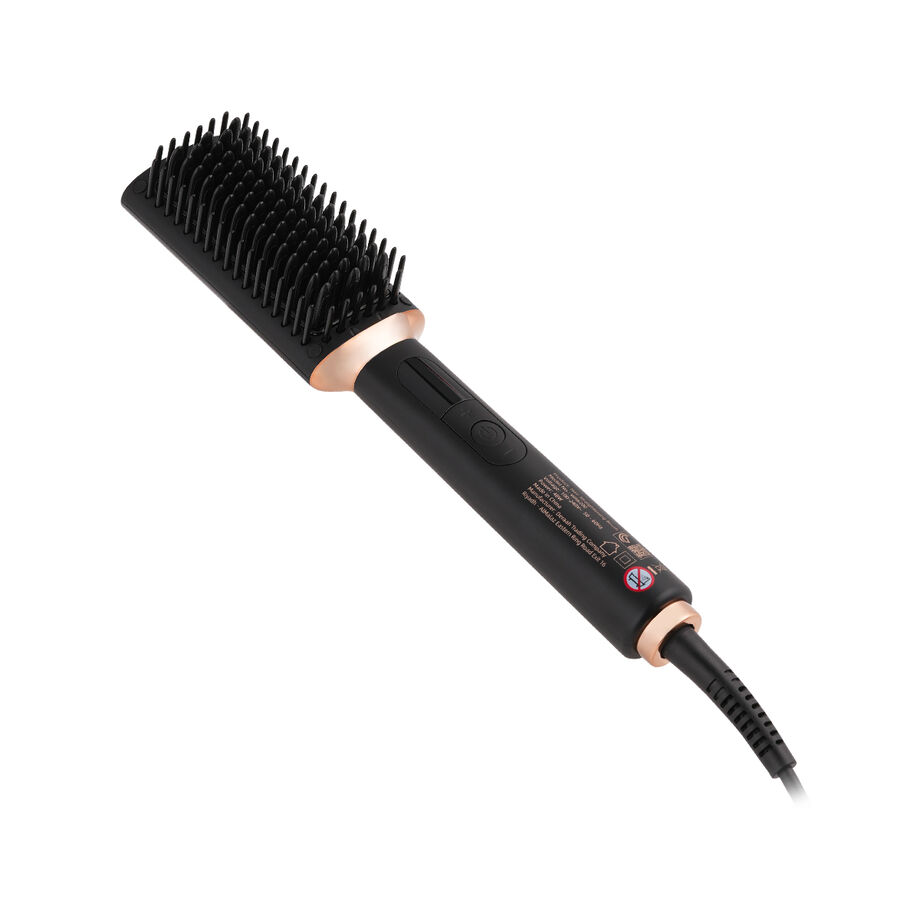 شاشة LCD لعرض درجات الحراة المرغوبة. فرشاة مطلية بمادتي السيراميك والتورمالين من أجل تحمّل اقصى درجات الحرارة وتوليد الايونات بنسبة 20 % و إضفاء مظهر حريري وجذاب.